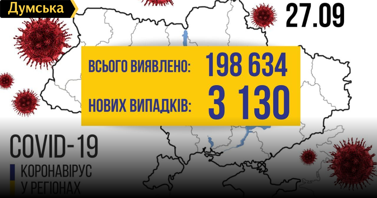 26 сентября в Украине зафиксировали 3130 новых случаев заражения COVID-19. C начала пандемии заболели уже 198634 человек.