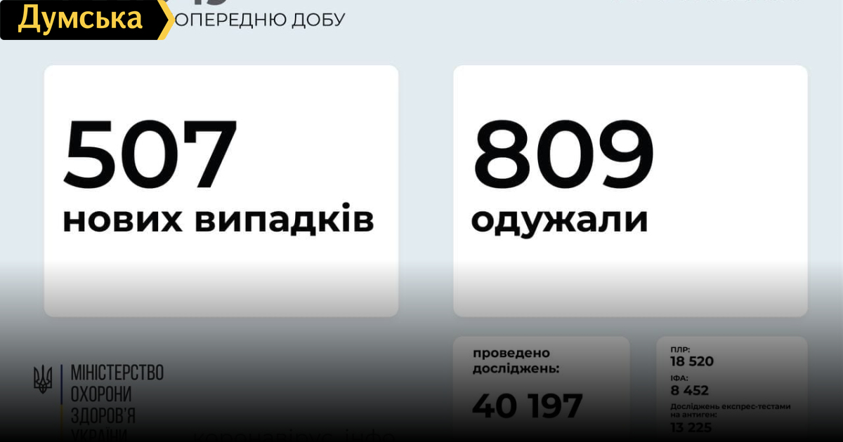 В Украине за сутки «ковидом» заболели 507 человек, 20 инфицированных скончались507 новых случаев заражений COVID-19 зафиксировали 9 июля в Украине. За время пандемии в стране «ковидом» заразились уже 2240753 человека. По данным Минздрава, вчера от осложнений инфекции умерли 20 украинцев (52592 за все время). Выздоровели за сутки 809 человек (2176919). «Ковидные» госпитали по стране заняты на 8,1% (3141 койка из 33996). Первую дозу вакцины вчера получили 53820 украинцев (2277226), вторую — 60840 человек (1143677). СМЕРТЬ РОСІЙСЬКИМ ОКУПАНТАМ! Помітили помилку? Виділяйте слова з помилкою та натискайте control-enter Новини по цій темі: 4 березня 2023: "Вакцини-довгожителі", або Як щеплення проти COVID-19 перетворилися в Україні на небезпечний ритуал 27 січня 2023: МОЗ зобов`язали опублікувати договори на закупівлю вакцин проти COVID-19: апеляційний суд задовольнив позов журналіста "Думської" 11 січня 2023: За тиждень в Одесі зафіксовано 159 випадків ковіду 4 січня 2023: За тиждень в Одесі зареєстровано 113 випадків ковіду |