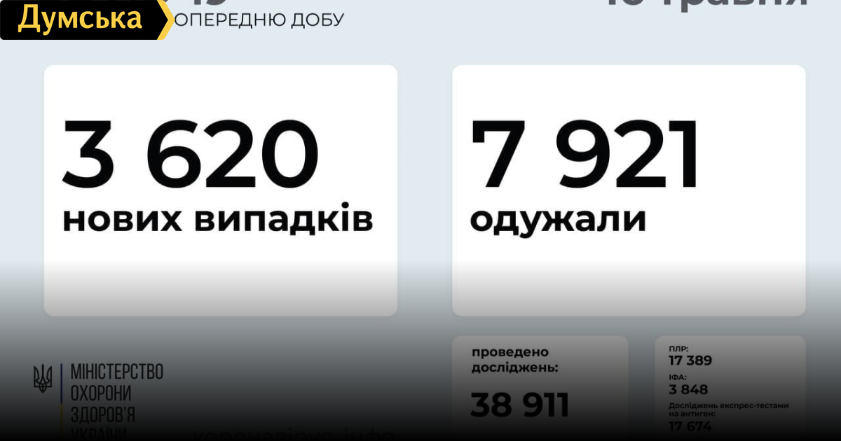 3620 новых случаев заражения коронавирусной инфекцией зафиксировали 15 мая в Украине. Больше всего инфицированных – 530 человек – было в Днепропетровской области. В Министерстве здравоохранения сообщили, что за время эпидемии в стране заболели уже 2153864 человека. Вчера от осложнений «ковида» умерли 133 человека (48075 за все время). Наивысшая летальность была также в Днепропетровской области – 27 смертей за сутки. Выздоровел 7921 человек (1857724). Большинство выздоровлений вчера было в Харьковской области – 1158. Койки в «ковидных» больницах по стране заняты на 29,6% (22974 из 77420). Вчера в Украине сделали 2739 прививок от «ковида». На первом месте была Тернопольская область – 240 вакцин за сутки. За все время сделали 939236 прививок. СМЕРТЬ РОСІЙСЬКИМ ОКУПАНТАМ! Помітили помилку? Виділяйте слова з помилкою та натискайте control-enter Новини по цій темі: 4 березня 2023: "Вакцини-довгожителі", або Як щеплення проти COVID-19 перетворилися в Україні на небезпечний ритуал 27 січня 2023: МОЗ зобов`язали опублікувати договори на закупівлю вакцин проти COVID-19: апеляційний суд задовольнив позов журналіста "Думської" 11 січня 2023: За тиждень в Одесі зафіксовано 159 випадків ковіду 4 січня 2023: За тиждень в Одесі зареєстровано 113 випадків ковіду |