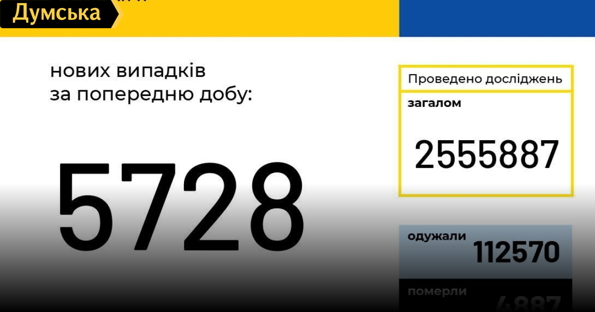 В Украине зафиксировали 5728 случаев коронавируса за сутки