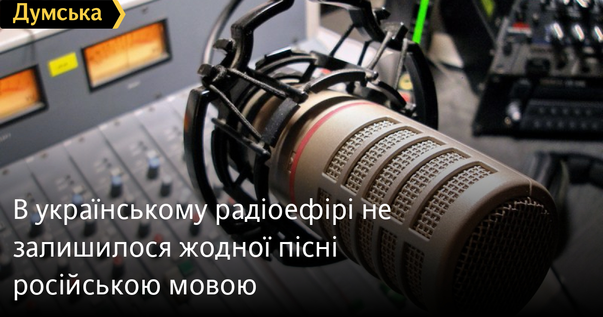 В українському радіоефірі не залишилося жодної пісні російською мовоюУкраїнські радіостанції перестали транслювати пісні російською мовою. Співробітники секретаріату уповноваженого із захисту державної мови проаналізували ефіри українських радіостанцій та констатували, що з них повністю зникли пісні російською. Аналіз пісень проводився 2 та 7 грудня в ефірах 14 загальнонаціональних радіостанцій. «З 8334 пісень, відтворених в ефірі радіостанцій протягом двох днів, 5599 виконано українською мовою (67,3%), 2732 – офіційними мовами Європейського Союзу (32,7%), три – грузинською», – повідомили у відомстві. «Водночас, досі фіксуються нерідкі випадки використання недержавної мови в інформаційних та розважальних передачах на радіо», — зазначили в офісі омбудсмена. Серед порушників: «Українське радіо», «Радіо НВ», «Хіт ФМ», «Мелодія FM« та «Перець FM». СМЕРТЬ РОСІЙСЬКИМ ОКУПАНТАМ! Помітили помилку? Виділяйте слова з помилкою та натискайте control-enter |