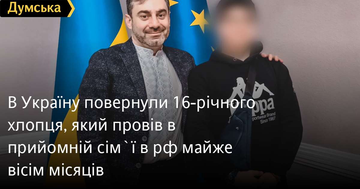 16-річного хлопця вдалося повернути в Україну після того, як його силоміць вивезли до рф, де він прожив в прийомній сім’ї майже вісім місяців.