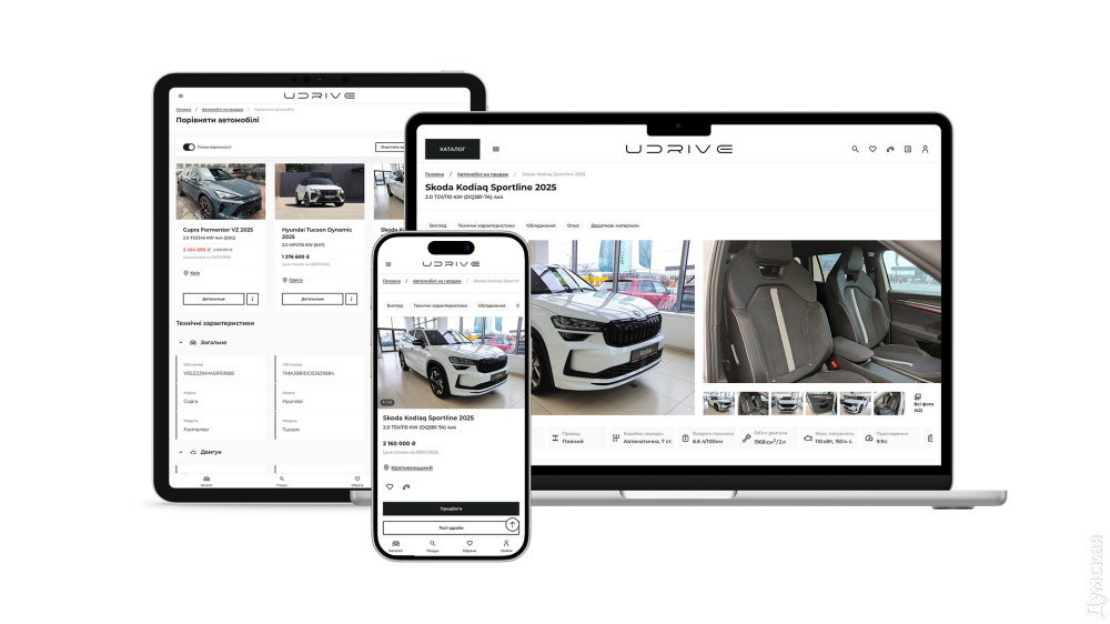 В Україні запрацював сервіс UDRIVE: нові авто від офіційних дилерів тепер можна обрати і купити онлайн (на правах реклами)В Україні запрацювала платформа UDRIVE – перша в країні система для онлайн-покупки нових автомобілів від офіційних дилерів з інтеграцією Дія.Підпису. На одному сайті об'єднані дилери різних марок, а весь шлях – від першого порівняння моделей до підписання договору – проходить в одній цифровій системі. Таких рішень за повнотою цифровізації процесу в Україні раніше не було. Коли ви вирішуєте купити нове авто, життя на кілька тижнів-місяців перетворюється на квест: десятки сайтів різних брендів, різні відгуки, термінологія, часті поїздки в салони. За підрахунками UDRIVE, у середньому цей процес займає приблизно два місяці. Ключова причина затягнутих рішень – інформація розпорошена між різними сайтами. Кожен бренд структурує дані по-своєму та використовує свою термінологію. Потенційні покупці, які обирають між авто різних брендів, змушені збирати картинку з різних сайтів, форумів та соціальних мереж, намагаючись зрозуміти, що насправді стоїть за ціною й комплектаціями. UDRIVE вирішує цю проблему через систему єдиного формату даних: характеристики та комплектації автомобілів різних марок приведені до єдиного стандарту. Людина бачить автомобілі в одному інтерфейсі, за однаковою логікою, може порівняти кілька варіантів за ключовими параметрами в кілька кліків – замість окремих таблиць чи нотаток. Прозорість ціни та цифровий документообіг Окремий акцент зроблено на прозорості ціноутворення. Платформа на основі інформації від офіційних дилерів та імпортерів автоматично розраховує вартість авто з урахуванням обраної комплектації та поточного курсу валют, тож покупець чітко розуміє, як формується фінальна сума і скільки саме залишилося сплатити. Це допомагає уникнути відчуття «прихованих опцій». Документообіг також переведений в онлайн. Інтеграція з Дія.Підпис дозволяє підписати договір без обов'язкового візиту до салону, а оплату провести через клієнт-банк. Користувач у будь-який момент має доступ до свого замовлення, може відстежувати статус у режимі 24/7 та отримує автоматичні сповіщення про кожен наступний крок. Якщо потрібен тест-драйв, його можна запланувати у зручний час, приїхавши до салону вже з конкретним вибором. Як це працює UDRIVE структурує шлях покупки в кілька послідовних етапів: ● клієнт знаходить і порівнює моделі різних брендів в одному інтерфейсі ● обирає формат взаємодії: консультація, тест-драйв чи онлайн-покупка ● виходить на зв'язок з дилером, який бачить повну історію вибору ● за потреби проходить тест-драйв ● оформлює всі формальності через Дія.Підпис або офлайн з оплатою через клієнт-банк ● в обраний день отримує авто. В подальшому буде запроваджена доставка автомобіля додому. Але вже зараз усі ключові кроки зібрані в одному сценарії, де покупець сам вирішує, що робити онлайн, а що – в салоні. До платформи вже під'єдналися всі офіційні дилери Škoda в Україні, а також дилери Hyundai, Ford, Renault, Suzuki, SEAT та CUPRA. Стратегічна ціль команди – скоротити час покупки щонайменше у п'ять разів. Ринок вживаних авто давно має свої онлайн-майданчики, а офіційні дилери – окремі сайти. До запуску UDRIVE в Україні не існувало сервісу, де весь цикл покупки нового автомобіля від різних офіційних дилерів відбувався б в