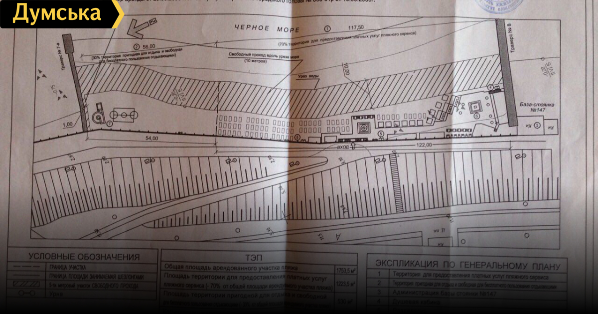 Документ, утвержденный начальником Управления инженерной защиты территории города и развития побережья Одесского городского совета, свидетельствует о том, что специалисты ведомства по незнанию либо умышленно обозначают ложные параметры пляжа. Так, на схеме размещена несуществующая пятиметровая зона свободного прохода к морю.
