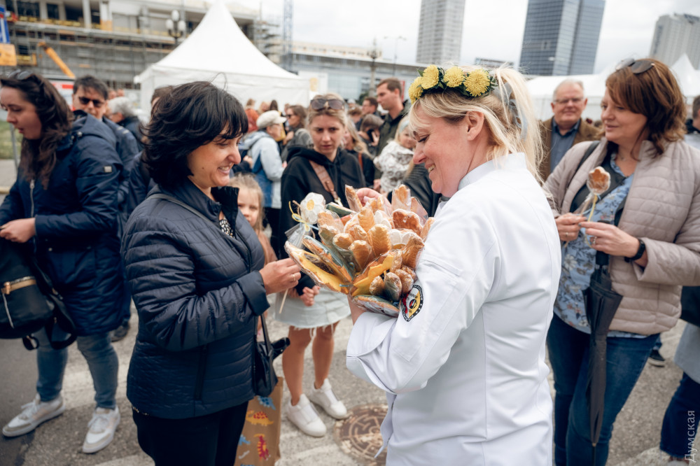 Известный одесский кондитер Оксана Бубликова провела акцию «Україна дякує полякам» на Международном книжном фестивале в центре Варшавы.