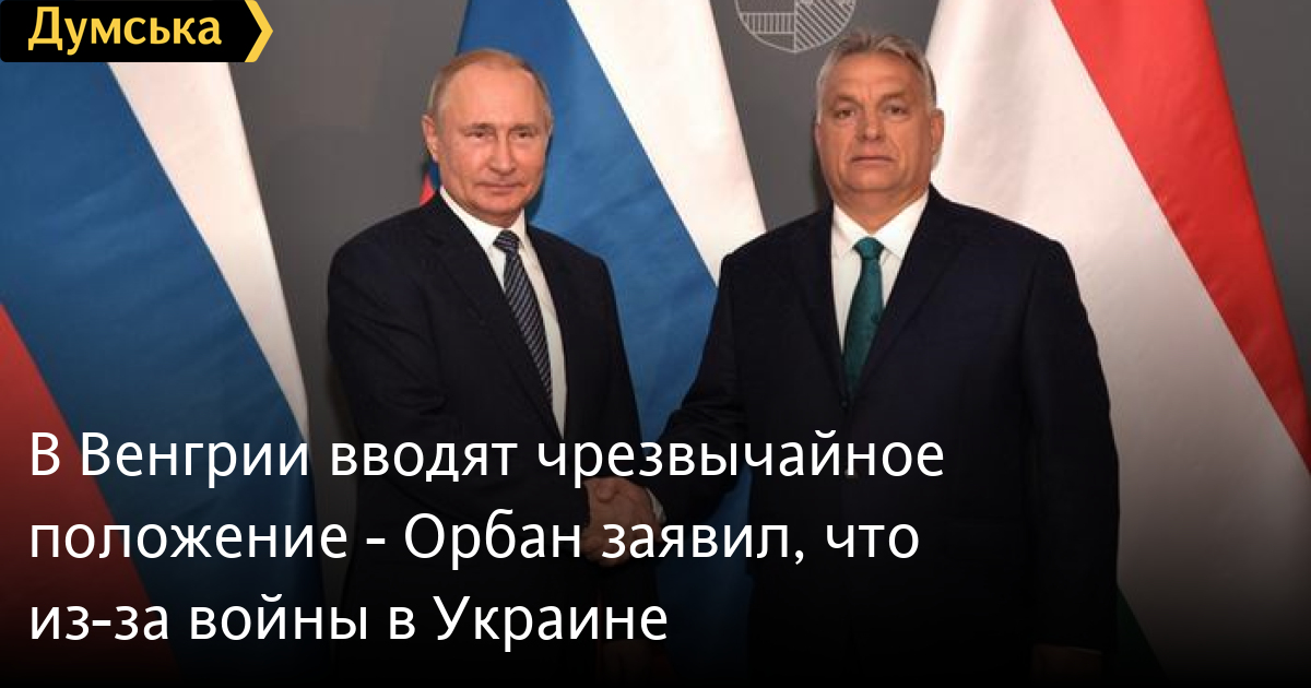 «Чрезвычайное положение, новый инструмент, одобренный парламентом ранее во вторник, вступит в силу в полночь и даст правительству «пространство для маневра и возможность немедленного реагирования» на последствия войны в соседней Украине, сказал Орбан в видеообращении на своей странице в Facebook», — сообщает издание.