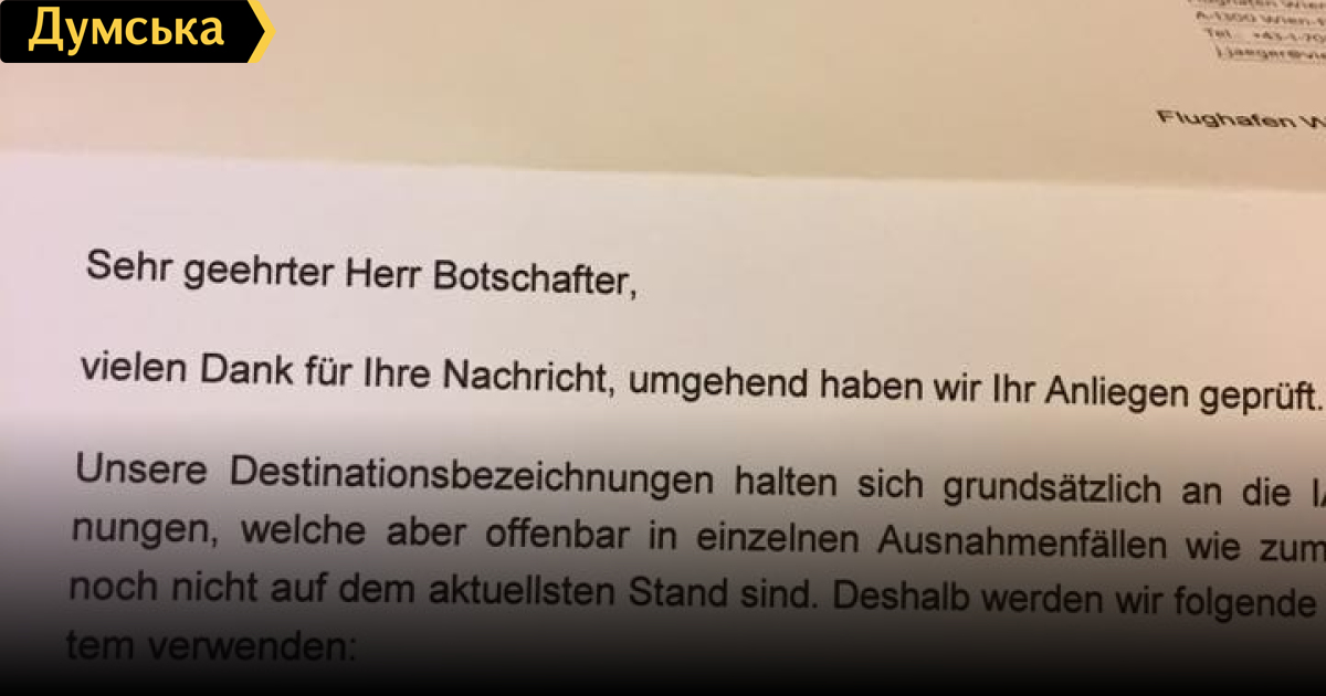 «Мы обратились в Венский аэропорт «Швехат» с просьбой ввести наконец украинскую транскрипцию украинских городов. Частично сработало. По Киеву должно быть отдельное решение на международном авиационном уровне», — отметил он.