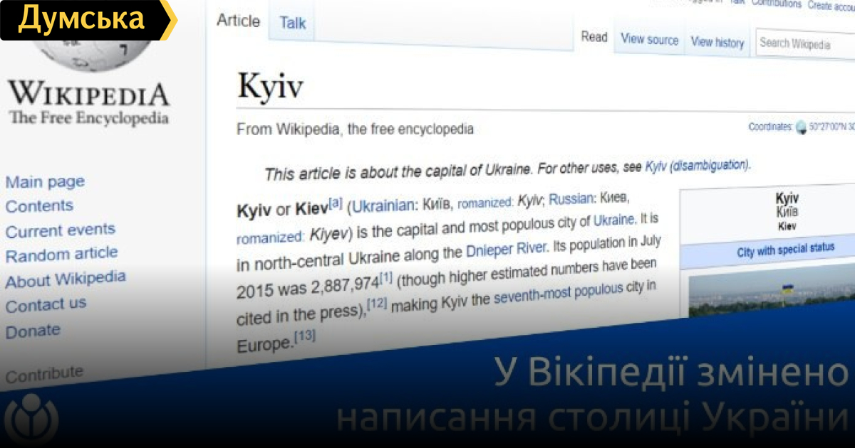 В статье о столице Украины в Википедии произошли изменения. Об этом сообщает пресс-служба ОО «Викимедиа Украина». Речь идет об англоязычном разделе Википедии. Ранее название украинской столицы там указывали как Kiev. Сейчас оно пишется на украинский лад – Kyiv. Переименовать столицу решили редакторы-волонтеры Википедии. Решение обосновали тем, что последняя форма обрела популярность в авторитетных англоязычных источниках. Так, ее стали больше использовать международные организации, в том числе аэропорты, а также СМИ. Более того, структуры власти тоже все чаще выбирают украинский вариант написания Киева, например, федеральное правительство США. Он прославился, в частности, благодаря инициативе «KyivNotKiev» от Министерства иностранных дел Украины. Все это и стало поводом для переименования статьи. За окончательное решение выступило около 100 активных корреспондентов раздела Вики, который публикуется на английском. Они нашли немало аргументов в пользу переименования. СМЕРТЬ РОСІЙСЬКИМ ОКУПАНТАМ! Помітили помилку? Виділяйте слова з помилкою та натискайте control-enter |