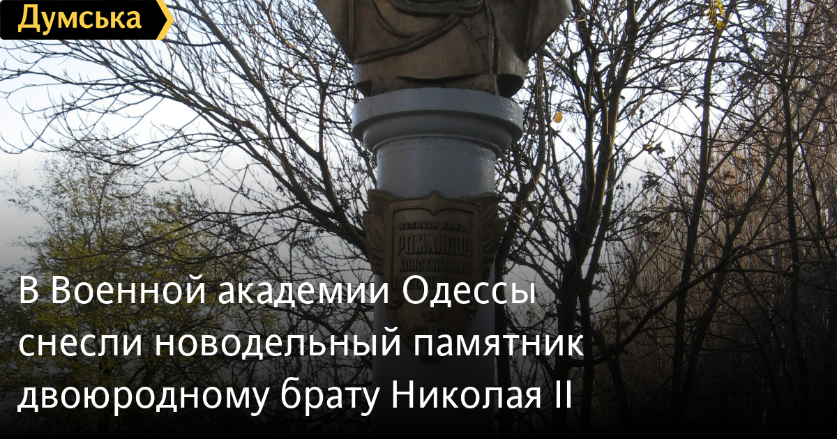 В Военной академии Одессы еще 27 ноября демонтировали памятник двоюродному брату последнего российского императора Николая II - Константину Романову, который был попечителем кадетских корпусов на территории царской России, в том числе одесского.