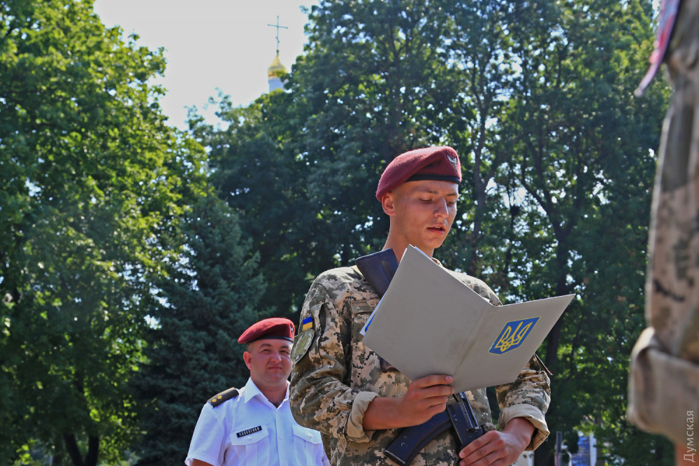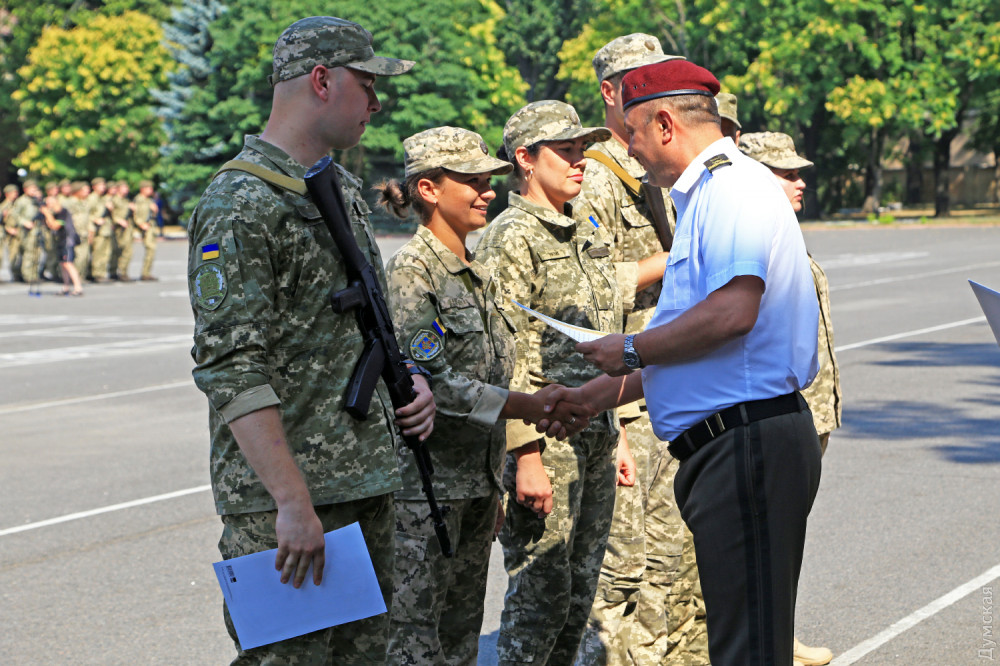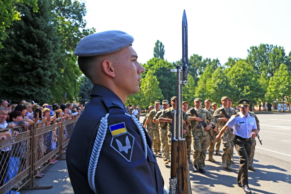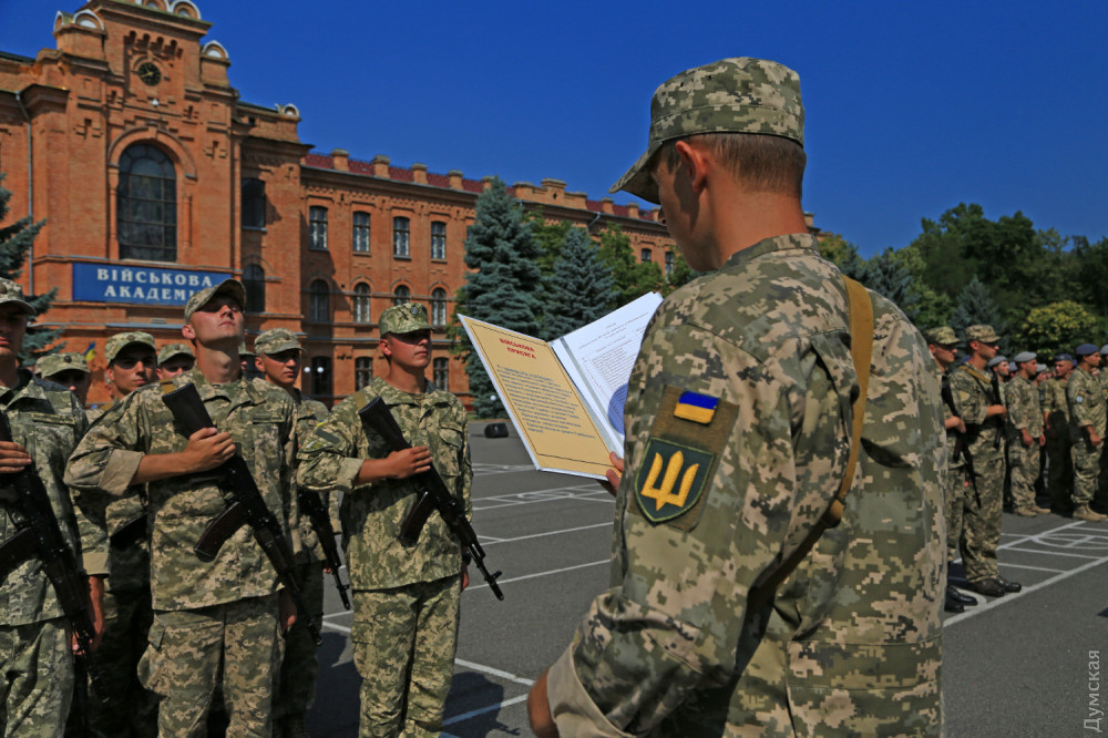Присягу на верность украинскому народу приняли сегодня в Военной академии Одессы почти 300 студентов, обучающихся на кафедре подготовки офицеров запаса.