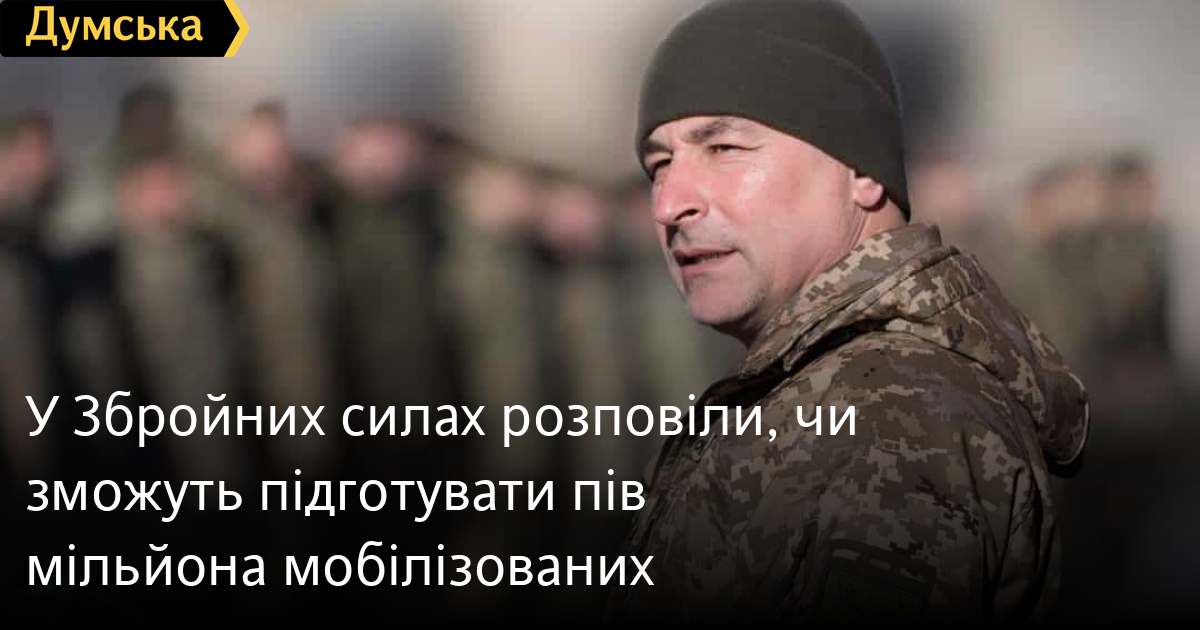 «500 тисяч, 100 тисяч, 200 тисяч — як буде визначено законом про мобілізацію, ми готові. На сьогодні, наприклад, ми постійно проводимо відповідні заходи, відбуваються службові наради, де уточнюються фактичні можливості всіх навчальних центрів, реальний стан інструкторського складу, тому що значна частина задіяна в районах виконання бойових завдань. Але на сьогодні ми здатні будь-яку кількість особового складу навчити», — зазначив командувач і додав, що тільки 20% військовослужбовців пройшли підготовку за кордоном, решта — в Україні.