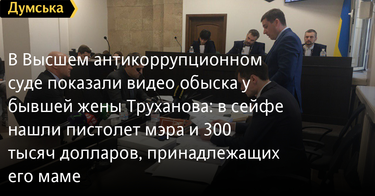 Прокуроры продемонстрировали видеозапись обыска в эллинге Колтуновой, расположенном на территории яхт-клуба на Новобереговой улице (по документам, это гараж для катера, в реальности же - полноценное жилье). Вскрыв сейф, правоохранители нашли в нем пистолет Fort-12 одесского мэра и 300 тысяч долларов США. Труханов заявил, что средства принадлежат его матери. Женщина подтвердила это, поэтому деньги не изымали.