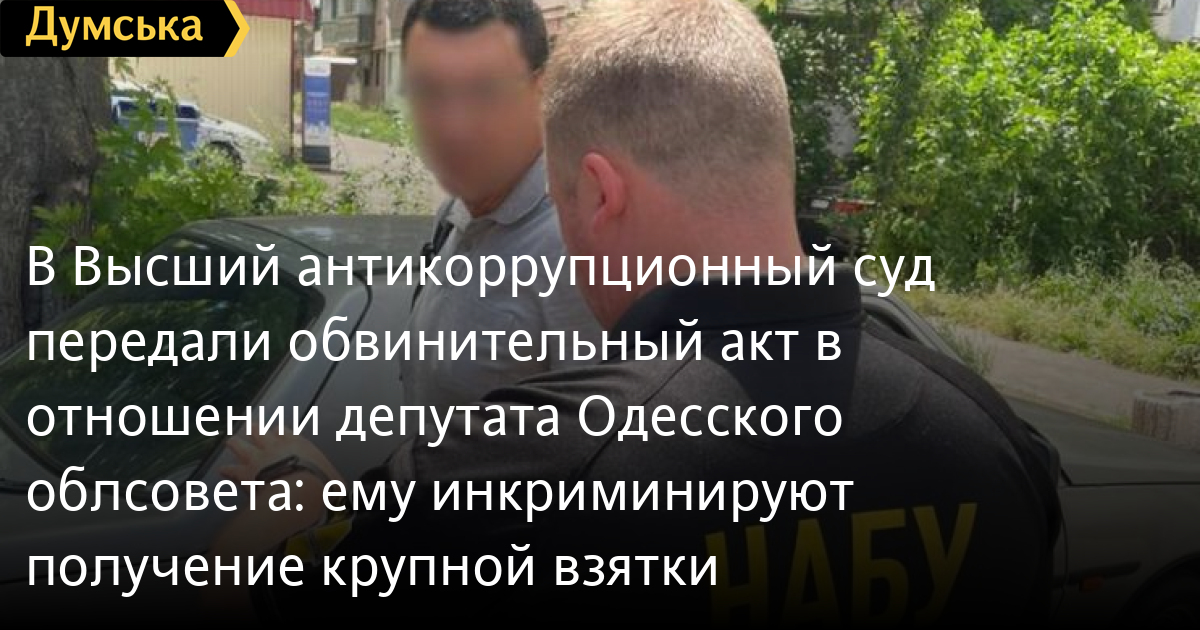 До Вищого антикорупційного суду передали обвинувальний акт щодо депутата Одеської облради: йому інкримінують отримання великого хабараОбвинувальний акт щодо депутата Одеської облради Дмитра Чапіра, якому інкримінують одержання неправомірної вигоди, направили до Вищого антикорупційного суду прокурори Спеціалізованої антикорупційної прокуратури. Про це повідомила пресслужба САП. За версією слідства, Чапір, який представляє партію «Довіряй ділам» мера Одеси Геннадія Труханова і очолює постійну комісію облради з питань охорони здоров'я та соціальної політики, вимагав і отримав від директора медзакладу 120 тис. грн. Натомість він пообіцяв не перешкоджати діяльності клініки і забезпечити збереження керівником посади. Затримали його 7 червня в момент отримання грошей. Суд обрав депутату запобіжний захід у вигляді тримання під вартою з можливістю виходу із СІЗО під заставу 992 тис. грн. Гроші Чапір вніс і зараз перебуває на волі. СМЕРТЬ РОСІЙСЬКИМ ОКУПАНТАМ! Помітили помилку? Виділяйте слова з помилкою та натискайте control-enter Новини по цій темі: 15 липня 2025: Вимагала 400 євро за підробку документів для пенсії: в Одеській області чиновниця попалася на хабарі (фото, відео) 27 червня 2025: За 40 тис. грн хотів купити секретні розробки: в Одесі затримали співробітника приватної фірми 6 червня 2025: Вимагав три тисячі доларів за довідку про інвалідність: в Одесі затримали головлікаря лікарні (фото) 8 травня 2025: Обіцяли оформити програмістом в комунальне підприємство: в Одеській області викрили схему ухилення від армії |