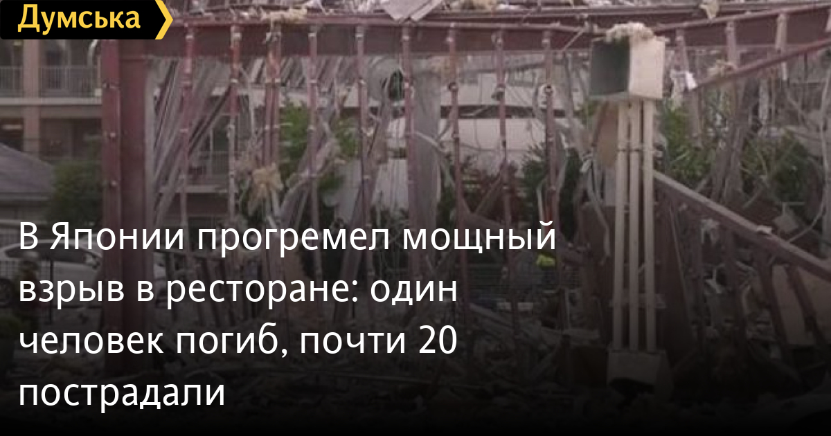 В Японии прогремел мощный взрыв в ресторане: один человек погиб, почти 20 пострадалиВ японском городе Корияма, расположенном в префектуре Фукусима, 30 июля произошел взрыв в ресторане. Об этом сообщает РБК. В результате инцидента один человек погиб, а еще 17 получили ранения. По имеющейся информации, взрыв прогремел в одном из местных ресторанов, в котором как раз заканчивался ремонт. Уже завтра заведение должно было возобновить свою работу. Причиной трагедии стала утечка газа. В связи с этим до сих пор сохраняется опасность повторного взрыва, и спасатели просят людей не выходить на улицу. Взрывной волной в жилых домах, расположенных в радиусе около ста метров от места происшествия, выбило стекла, в некоторых зданиях сильно повреждены стены и крыши. Разрушенным оказалось и отделение банка, находящееся неподалеку. Оно приостановило работу, а двое его сотрудников находятся в числе пострадавших. Сам ресторан почти полностью уничтожен. Всех пострадавших госпитализировали. СМЕРТЬ РОССИЙСКИМ ОККУПАНТАМ! Заметили ошибку? Выделяйте слова с ошибкой и нажимайте control-enter |