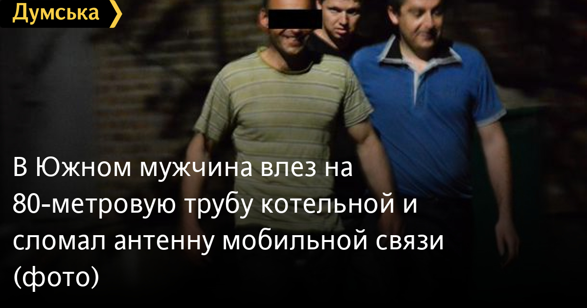 Жертвой экстремальной выходки мужчины стала антенна мобильной связи, которую он открутил и сбросил вниз. Скорее всего, пострадало оборудование мобильного оператора «Лайф». Сразу после падения антенны абоненты этой мобильной связи в Южном стали жаловаться на прерывающийся сигнал.