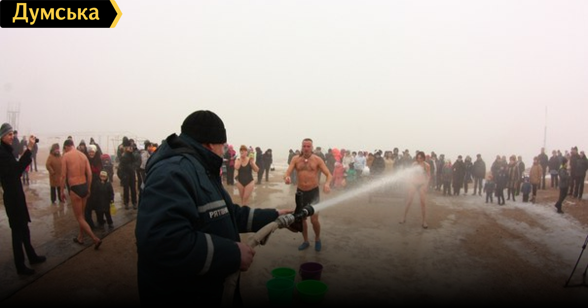 В рамках праздника, который проходил на центральном пляже, горожане разожгли костер, водили хороводы и обливались водой из ведер. Также любителям зимнего купания помогли спасатели, которые согласились окатить всех желающих из брандспойта.