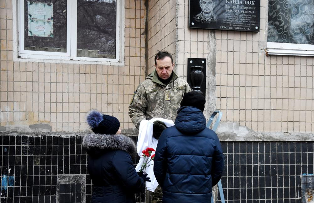 Мемориальную доску воину 28-й отдельной механизированной бригады Виктору Кандалюку, который прошлым летом погиб на фронте, открыли на днях в Южном.