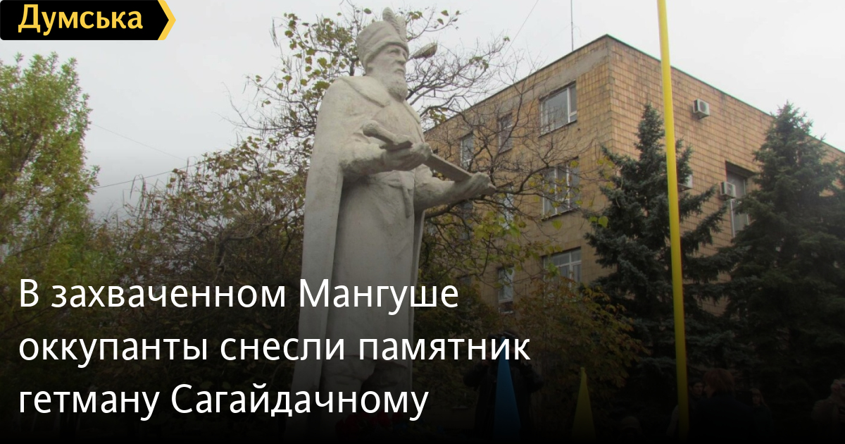В захваченном поселке Мангуш Мариупольского района Донецкой области оккупанты 7 мая снесли памятник гетману Сагайдачному, установленный в 2017 году по инициативе полка «Азов».