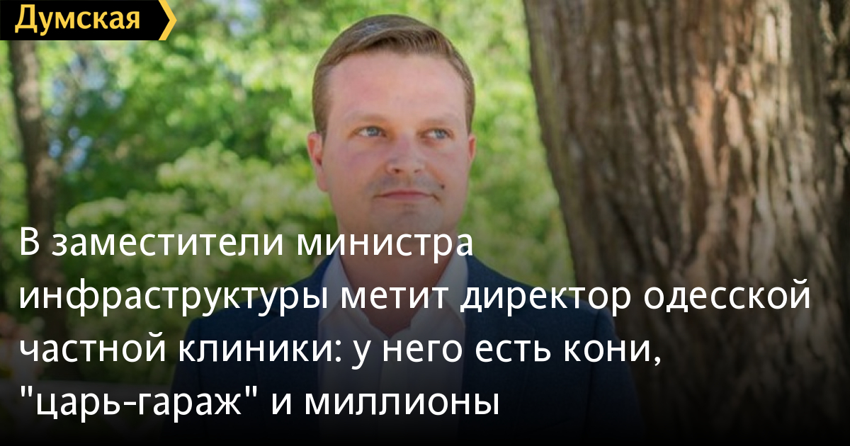 Новое лицо В заместители министра инфраструктуры метит директор одесской частной клиники: у него есть кони, «царь-гараж» и миллионыКабмин намерен назначить замминистра инфраструктуры директора одесской частной клиники «Инто-Сана» Олега Ющенко. Будущий сановник уже опубликовал свою декларацию, да не одну, а две. Первую он подал 30 октября, но 1 ноября появилась вторая. Оказывается, Ющенко забыл вписать двух коней своей жены стоимостью 250 тысяч гривен и винтовку (карабин) за 80 тысяч, приобретенную в далеком 2009 году. Олег Ющенко родился 2 апреля 1984 года в Киеве. В 2006 году окончил частную (и довольно сомнительную) Межрегиональную академию управления персоналом. Он женат, воспитывает двух дочерей и сына. Работает директором одесской медицинской компании «Инто-Сана» и медцентра «Медикап», которые формально принадлежат американским компаниям, но, по данным «Думской», остаются в собственности своих создателей — семьи Круков, глава которой в 1993-1995 годах уже был замминистра транспорта. Круки, напомним, участвовали в избирательной кампании нынешнего президента Владимира Зеленского. Не исключено, что это назначение — плата за поддержку. Если верить декларациям, Ющенко владеет квартирой площадью 138 кв. м в Киеве, которую приобрел в 2007 году вместе с женой и оценил на момент покупки в 3 млн 30 тысяч гривен. В 2018 году была куплена еще одна квартира в столице площадью 317 кв. м почти за 7 миллионов гривен. Кроме этого, у жены будущего замминистра Виктории есть дом площадью 442 кв. м, купленный в 2013 году. Также Олег Ющенко задекларировал огромный гараж площадью 142 кв. м в Киеве, приобретенный в канун нынешнего года за смешные 41,5 тыс. грн. Чета Ющенко носит часы Rolex, Ulysse Nardin, Breitling, Bovet, Breguet. В декларации отмечены семь изделий этих марок. Супруга вероятного замминистра носит украшения марки Tiffany и две сумки Louis Vuitton (еще две у ее пижона-мужа). Еще у кандидата обнаружился целый автопарк: Mercedes S-class 2014 года, Mercedes S-class 2015 года, Porsche Cayenne 2011 года, Lexus LX 570 2012 года, Mercedes G 63 2014 года, Audi S8 2016 года. У жены машин нет. Ющенко указал в декларации свои корпоративные права в компаниях «ГЛОБАЛ ЭСТЕЙТ», «Твининг», «КОРН ВОК», «КЛУБ ТВ», «МЕГАПРОМБУД 8», «УКРЛОГО-2007», «ФИРМА «ИНТЕРАЛЬЯНСПЛЮС», «УКРАИНСКИЙ АВТОМОБИЛЬНИЙ АССИСТАНС», «СМК «ГРАН ПРИ МАЛИН». Он является конечным бенефициарным собственников фирмы «ЮКАМС» и «ДЕВЕЛОПТРАНСБУД». У жены есть доля в компании с громким названием «Н.А.С.А.». Кандидату в замминистры принадлежат торговые марки и коммерческие названия «Глобал Эстейт», «ДЖИ И ЭФ СИ», «ОперДрук» и права на какое-то литературное произведение. В 2015 году Ющенко обзавелся криптовалютой в биткоинах на сумму 600000 гривен. По основному месту работы в 2018 году он заработал 718 тысяч гривен, а еще почти 200 тысяч «по совместительству». В банке он хранит 100 тысяч гривен и три миллиона долларов. В 2018 году Ющенко получил кредит в «Укргазбанке» в размере 4 млн. 797 тыс. гривен. В прошлом году кандидат в замминистры купил за 6 млн 910 тысяч гривен квартиру, а также три авто — за 2,5 млн, 3 млн и 2,3 млн гривен. Юрий Крук-старший — народный депутат многочисленных созывов, в 1990-х работал заместителем министра транспорта Украины, а в Раде возглавлял комитет по вопросам строительства, транспорта и связи. Его сын Вячеслав Крук, экс-депутат Одесского горсовета, бывший замминистра охраны окружающей среды. Еще оди