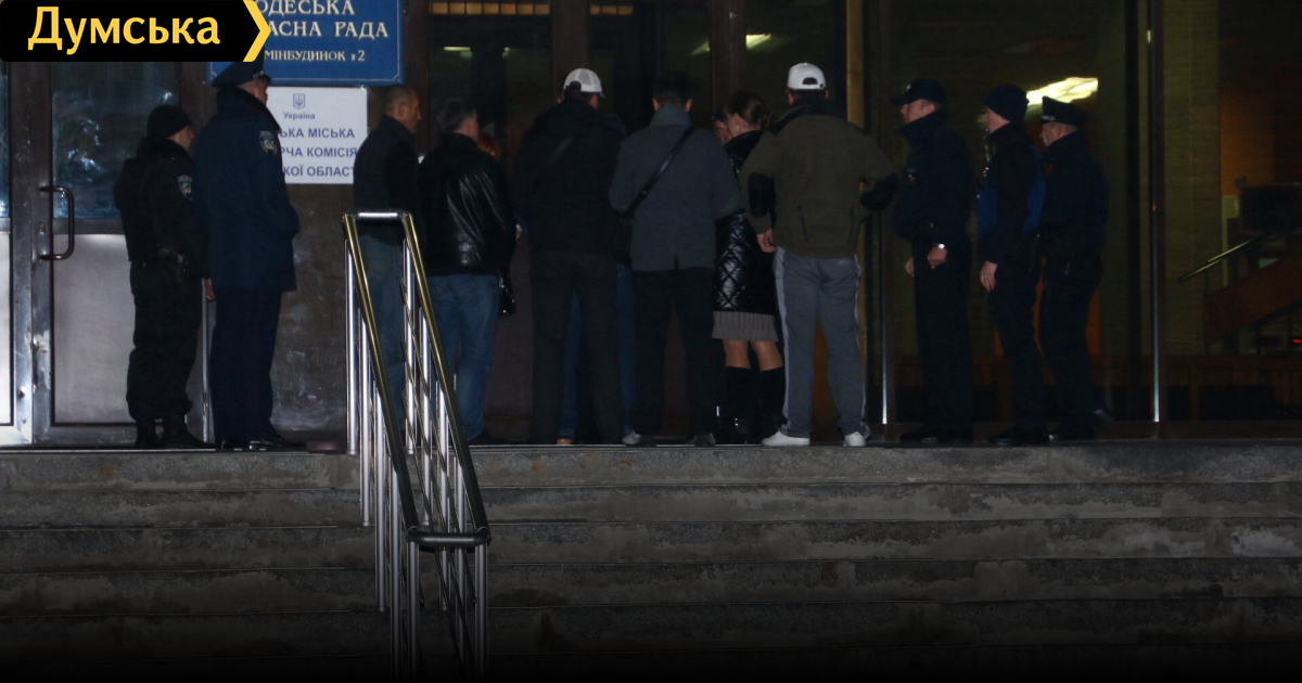 «Заминированный» гортеризбирком Одессы, оказывается, продолжает работать. Только что в него попала группа молодых людей во главе с депутатом горсовета, членом партии «Доверяй делам» Олегом Этнаровичем. Оцепившая здание на Канатной полиция объяснила, что это «какая-то комиссия пришла с уточненным протоколом». При этом журналистов и наблюдателей новые и честные правоохранители внутрь не пустили — оглашение итогов выборов проходит без посторонних.