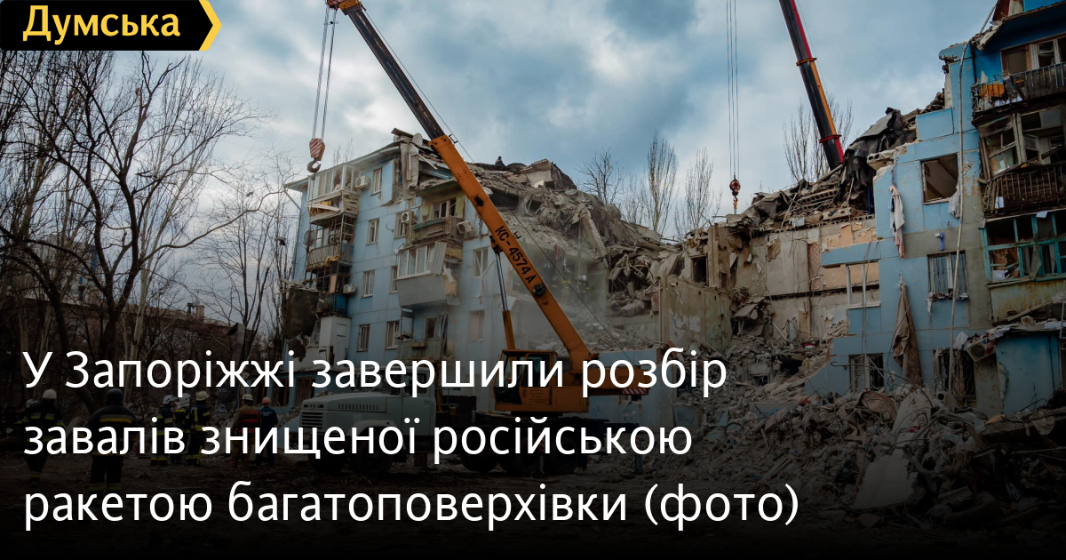 Рятувальники завершили розбір завалів знищеного ворожою ракетою багатоповерхового житлового будинку в Запоріжжі.