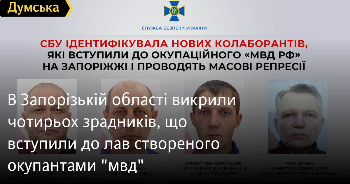 Чотирьох поплічників окупантів, які вступили до створеного ними «главного управления мвд по Запорожской области», викрили українські правоохоронці.