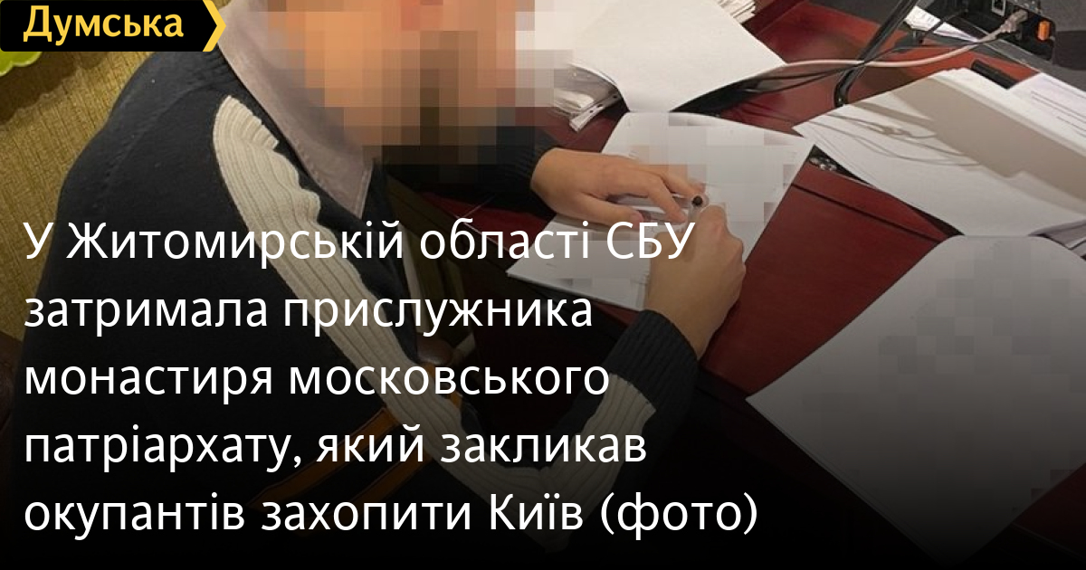 Оперативники Служби безпеки України затримали в Житомирській області прислужника Спасо-Покровського жіночого монастиря місцевої єпархії Української православної церкви московського патріархату.