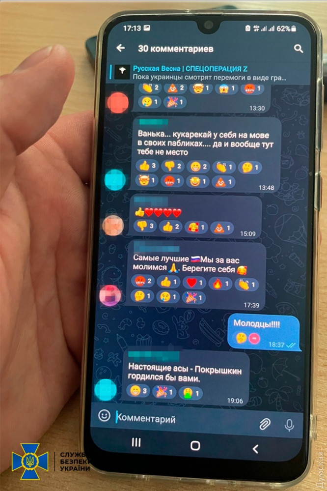 У СБУ повідомили, що чоловік активно коментував публікації в одному з російських пропагандистських телеграм-каналів — закликав рашистів знищувати українців і захопити Київ, «святкував» ворожі ракетні атаки.