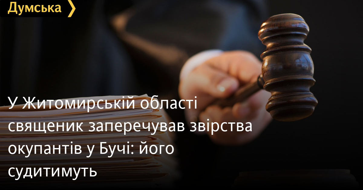 У Житомирській області священик заперечував звірства окупантів у Бучі: його судитимутьСлідство скерувало до суду обвинувальний акт стосовно настоятеля однієї з римо-католицьких парафій в Житомирській області. В Офісі генерального прокурора повідомили, що священика судитимуть за ч. 1 ст. 436-2 Кримінального кодексу України (виправдання, визнання правомірною, заперечення військової агресії російської федерації проти України). Встановлено, що фігурант після богослужінь нав'язував парафіянам свою думку з приводу того, що російські окупанти не вбивали мирне населення Бучі. Свою думку він аргументував тим, що нібито був у Київській області під час окупації і «все бачив сам». СМЕРТЬ РОСІЙСЬКИМ ОКУПАНТАМ! Помітили помилку? Виділяйте слова з помилкою та натискайте control-enter |