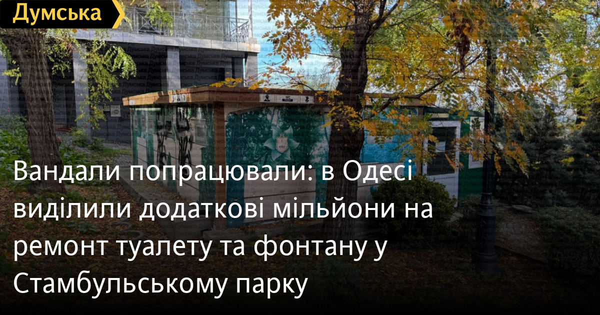 Вандали попрацювали: в Одесі виділили додаткові мільйони на ремонт туалету та фонтану у Стамбульському паркуДодаткові 2,5 млн грн потрібні для ремонту інфраструктури Стамбульського парку. На ремонт туалету було виділено мільйон гривень, ще 1,5 мільйона — на відновлення фонтану, про це стало відомо на засіданні профільної комісії. Як пояснили чиновники, ці витрати обґрунтовані незадовільним станом об'єктів. Туалет давно не ремонтувався, потребує повного капітального оновлення, включаючи комунікаційні мережі, внутрішні приміщення та фасади. Фонтан, у свою чергу, серйозно підтікає, постраждав від вандалізму і вимагає заміни гідро- та електрообладнання, нової гідроізоляції та покриття. Спочатку планували витратити на ремонт меншу суму, але грошей на це не вистачило, заявив директор КП «Сервісний центр» Зураб Шонія. «Спочатку на ремонт фонтану нам виділили 914 тисяч гривень, а на туалет — півтора мільйона. Однак після оформлення проектно-технічної документації стало зрозуміло, що цих коштів недостатньо, тому ми запросили додаткові суми. Ремонт кожного з двох об'єктів обійдеться в 2,5 млн грн, які ми виплатимо підрядникам після закінчення робіт«, — повідомив нам директор КП »Сервісний центр» Зураб Шонія. Чиновники підтвердили, що ремонтні роботи будуть розпочаті і продовжаться, незважаючи на настання зими, оскільки температурний режим дозволяє їх проводити. СМЕРТЬ РОСІЙСЬКИМ ОКУПАНТАМ! Помітили помилку? Виділяйте слова з помилкою та натискайте control-enter |