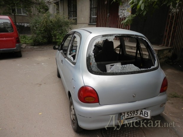 «Несколько минут он звал хозяина, мол, выходи, это последнее предупреждение, а потом начал дубасить машину по всем стеклам, — рассказали «Думской» очевидцы, наблюдавшие происшествие с балконов. — После него машину успели обработать местные «потрошители» — вынули магнитофон, обчистили бардачок и багажник».
