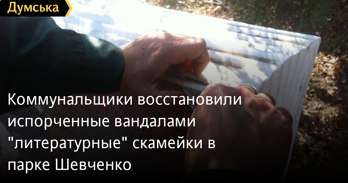 В минувшие выходные вандалы испортили четыре «литературные» скамейки, которые в рамках Общественного бюджета были установлены на одной из аллей парка имени Тараса Шевченко.