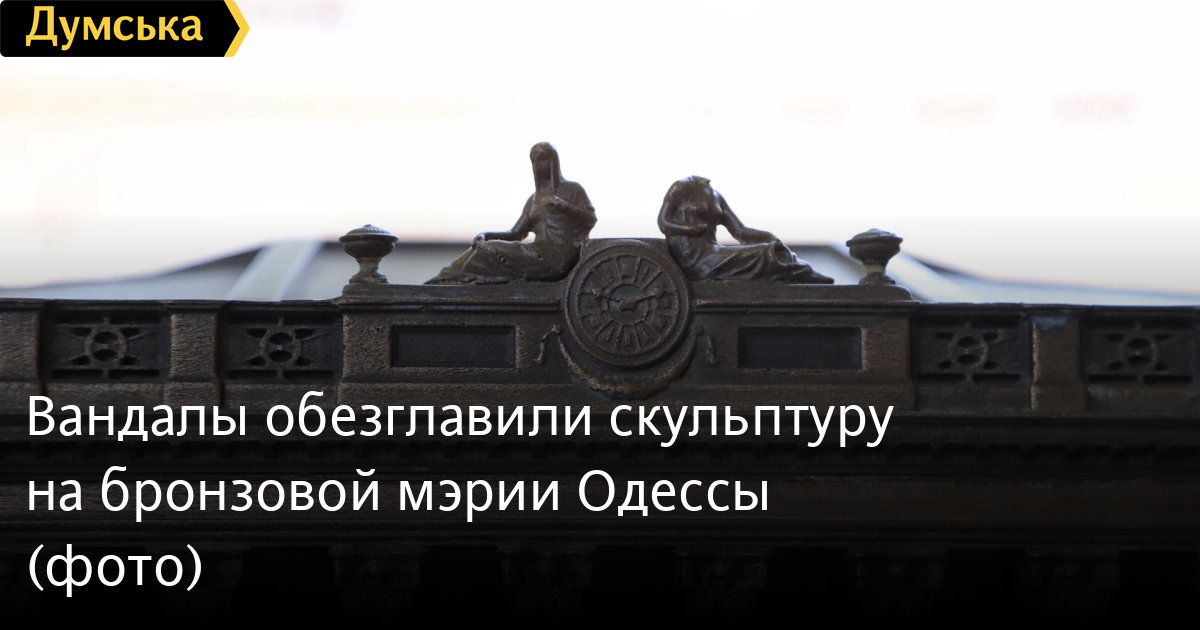 Как передает корреспондент «Думской», вандалы обезглавили одну из скульптур копии композиции «День и Ночь», которая размещена над часами.