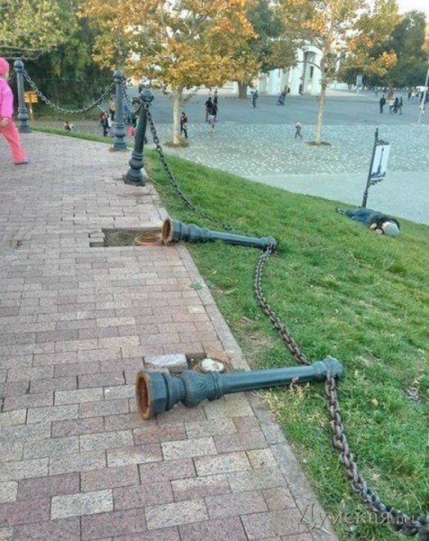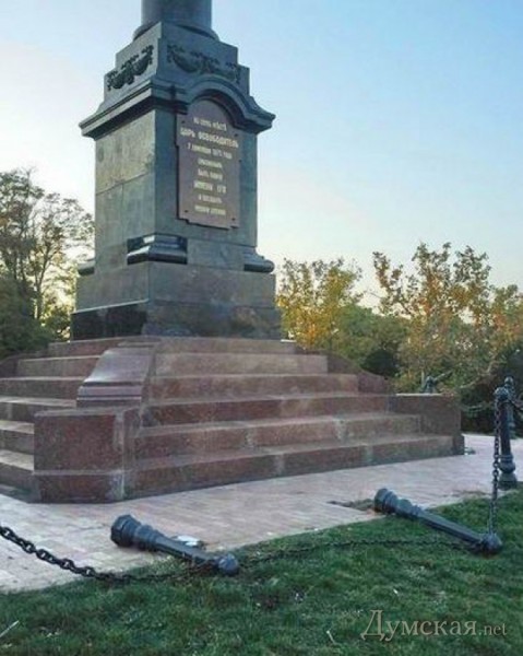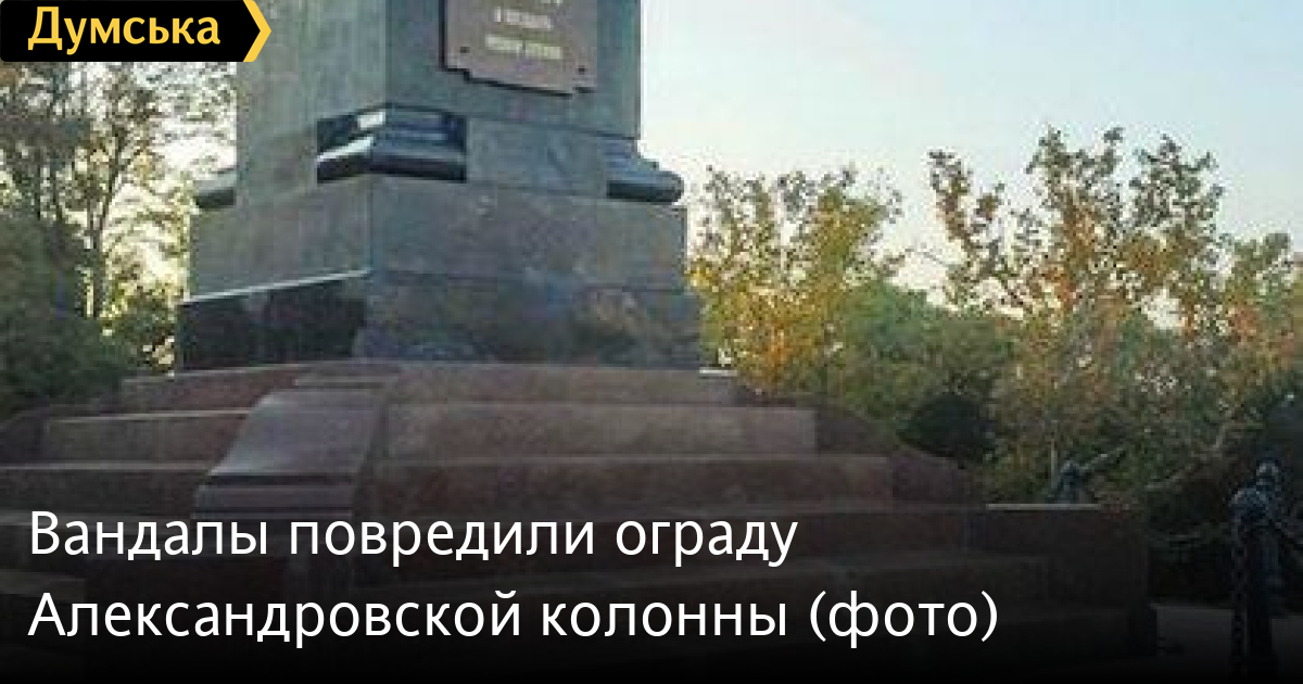 Александровская колонна в парке Шевченко едва не лишилась металлической ограды – неизвестные частично вырвали из земли тяжелые столбы с цепями.