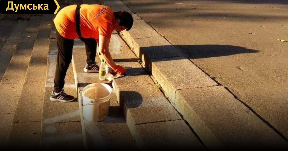 Вандалы разрисовали остановку в центре города и ступени на Ланжероновской лестнице