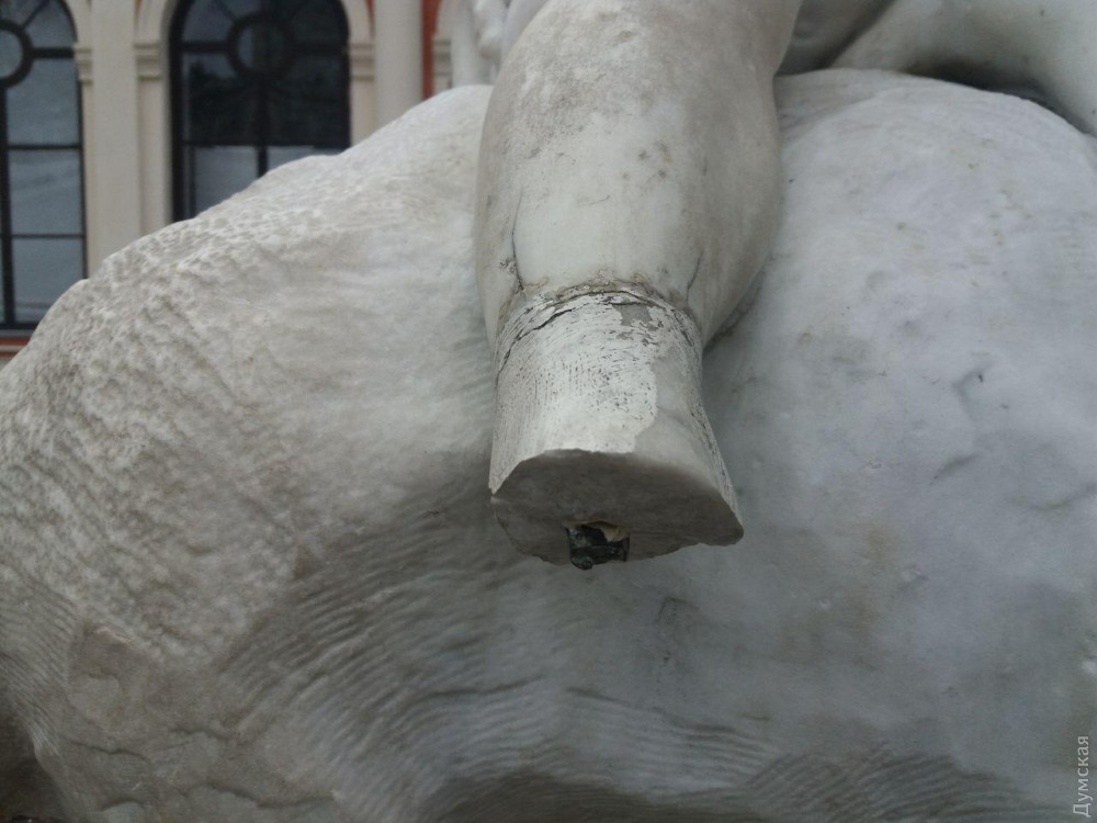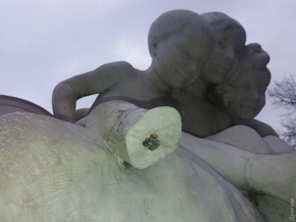 Очередному покушению неустановленных хулиганов подверглась скульптурная композиция «Дети и лягушка» на Театральной площади в Одессе.