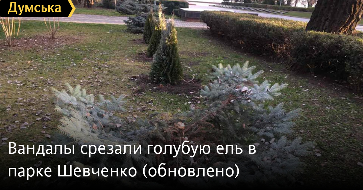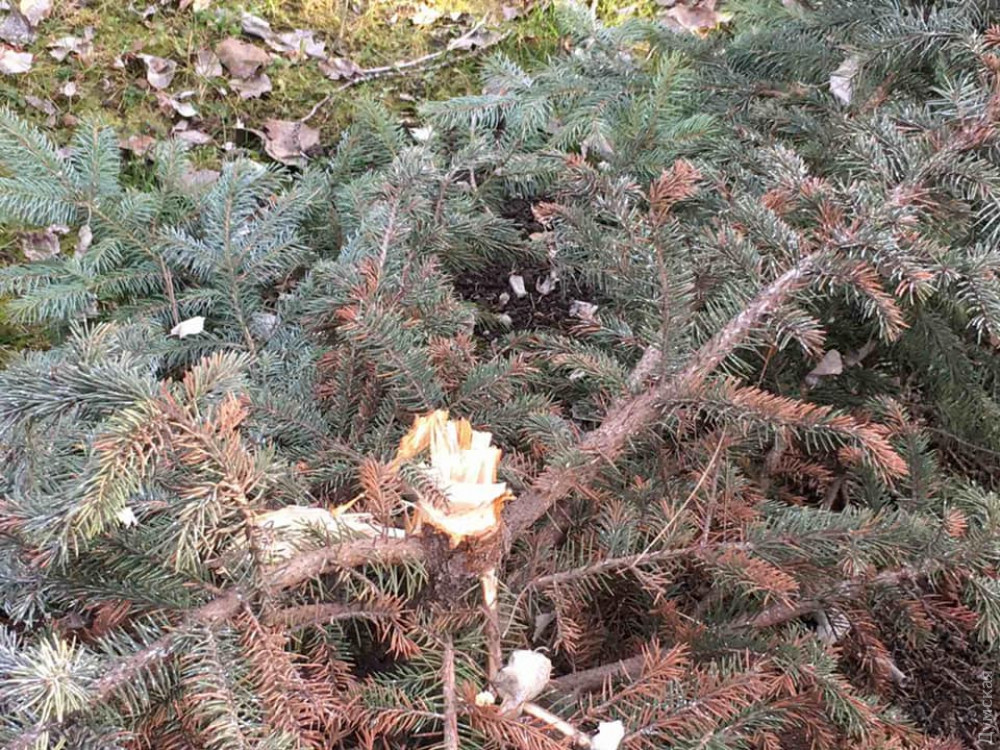 Минувшей ночью неизвестные вандалы срезали голубую ель в одесском парке Шевченко. Примерно неделю назад была украдена еще одна ель.