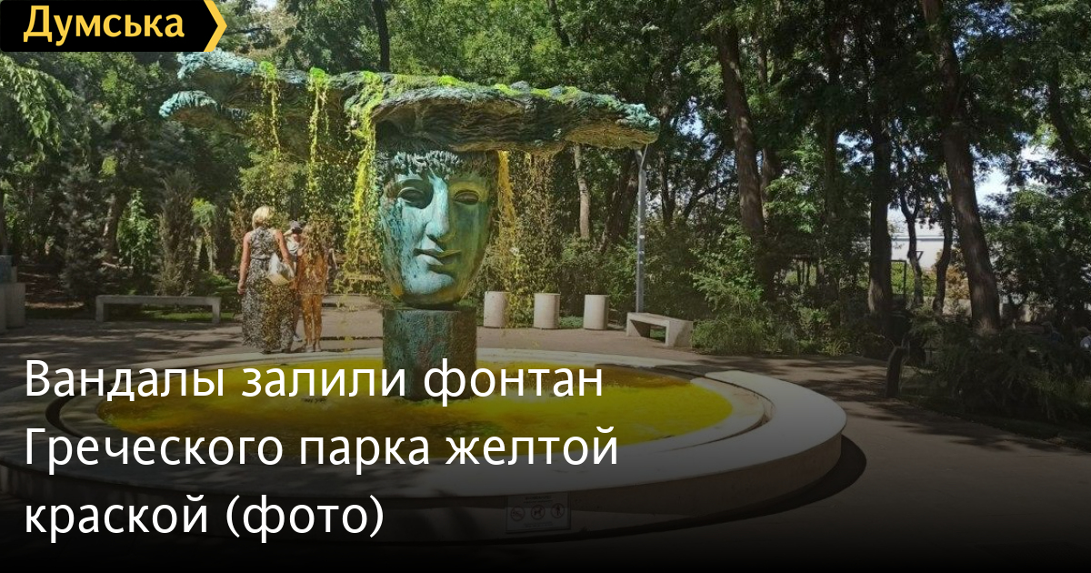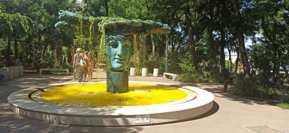 Неизвестные вандалы залили желтой краской чашу фонтана, который расположен в Греческом парке Одессы.