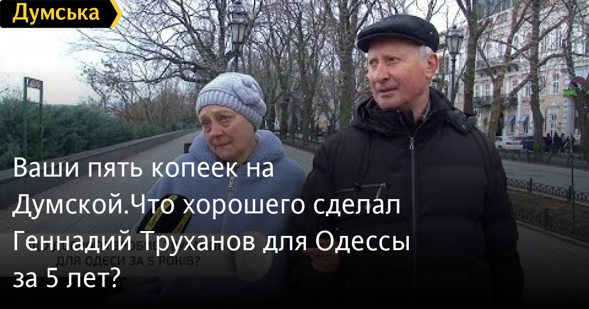 Ваши пять копеек на «Думской».Что хорошего сделал Геннадий Труханов для Одессы за 5 лет?СМЕРТЬ РОССИЙСКИМ ОККУПАНТАМ! Заметили ошибку? Выделяйте слова с ошибкой и нажимайте control-enter Думская ТВ. Ваши пять копеек на «Думской»: