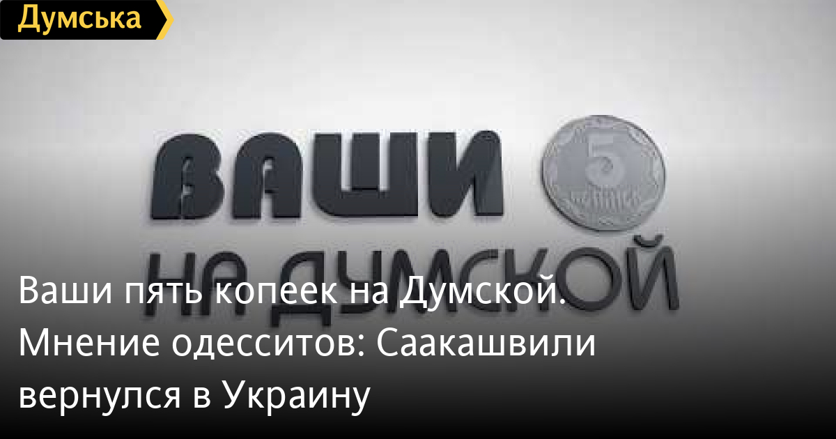 Ваши пять копеек на «Думской». Мнение одесситов: Саакашвили вернулся в УкраинуСМЕРТЬ РОССИЙСКИМ ОККУПАНТАМ! Заметили ошибку? Выделяйте слова с ошибкой и нажимайте control-enter Думская ТВ. Ваши пять копеек на «Думской»: