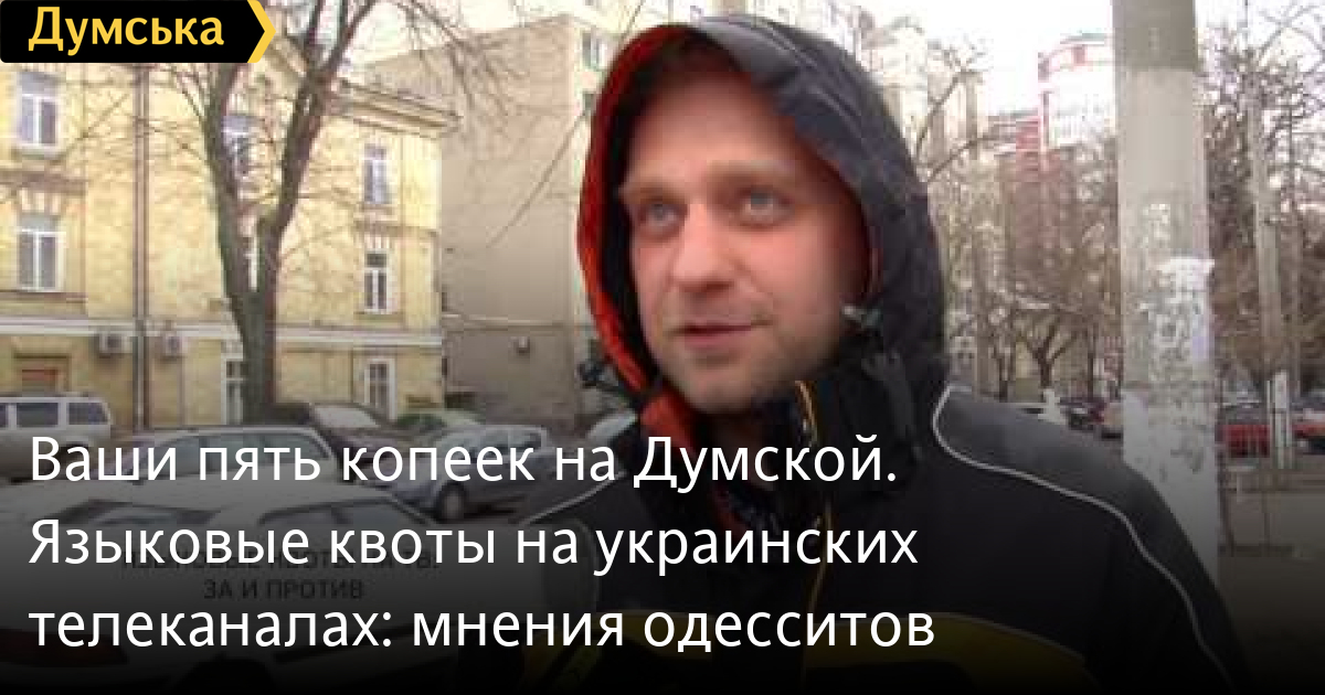 Ваши пять копеек на «Думской». Языковые квоты на украинских телеканалах: мнения одесситовСМЕРТЬ РОССИЙСКИМ ОККУПАНТАМ! Заметили ошибку? Выделяйте слова с ошибкой и нажимайте control-enter Думская ТВ. Ваши пять копеек на «Думской»: