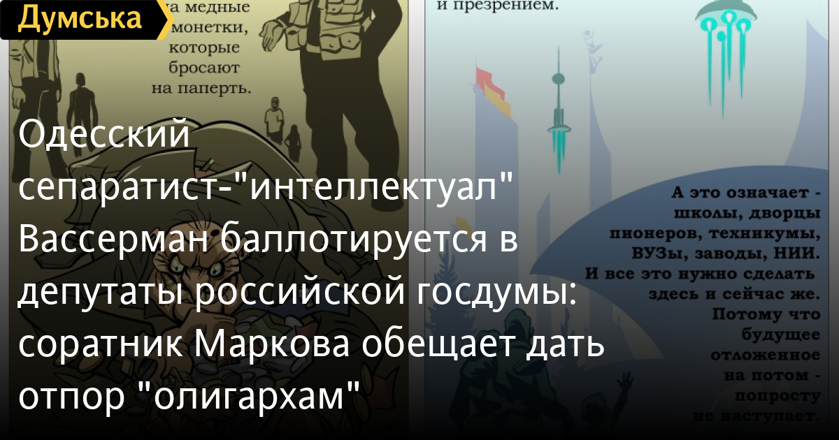 При этом Вассерман, который в свое время был доверенным лицом одесского бизнесмена Игоря Маркова, захватившего и застроившего ряд государственных санаториев, обещает избирателям борьбу с олигархами.