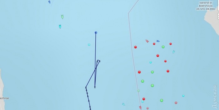 Согласно АИС, он сейчас дрейфует в Керченском проливе.