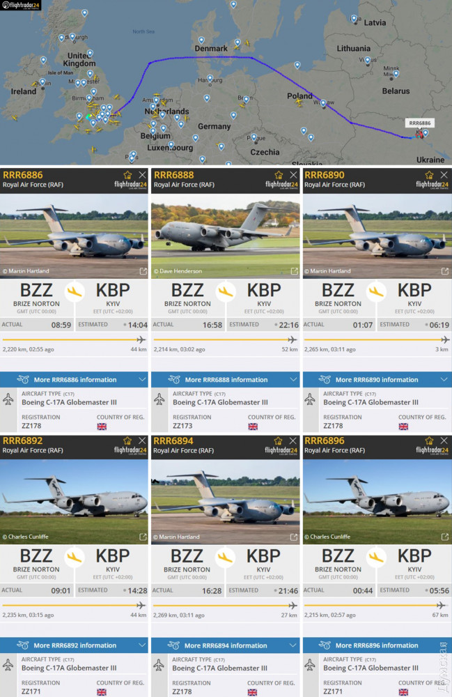 Интересно, что британские самолеты направляются в Украину, не заходя в воздушное пространство Германии — очевидно, правительство ФРГ отказалось санкционировать такие полеты.