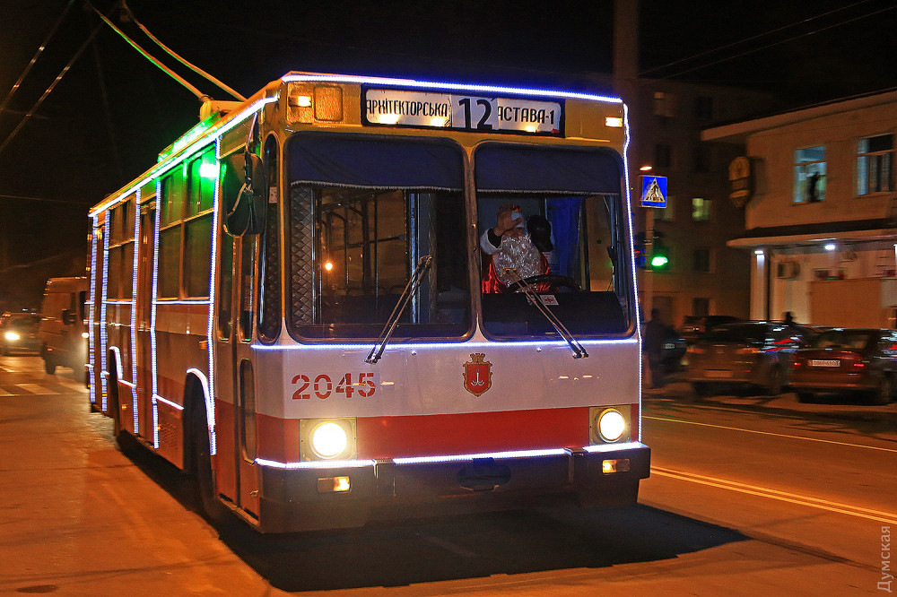 По улицам Одессы сейчас проходит парад празднично украшенных троллейбусов. Такой подарок сделали одесситам работники муниципального электротранспорта ко Дню Святого Николая.