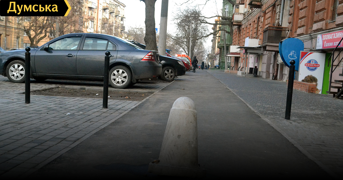 Местами не хватает антипарковочных столбиков. Автолюбители заезжают на тротуар по велодорожке и паркуются. Не понятно зачем такой широкий заезд сделали — поставили бы столбики чуть уже — авто не заедет, а велосипедистам хватит с головой. В квартале Нежинская-Коблевская ежедневно ровно на велодорожке паркуется Таврия, остальные паркуются цивилизованно. В квартале Коблевская-Княжеская в районе остановки 2го на велодорожке, остановке, тротуаре все забито машинами. Паркуют свои «креветки» Smilefood и постоянно Стоит на велодорожке синий Миникупер с окрашенными в британский флаг зеркалами. В квартале Княжеская-Пастера по четной стороне весь дом паркуется на тротуаре, хотя ровно напротив по нечетной стороне зияет пустотой парковочный карман. Пастера-Софиевская — все предсказуемо, студенты, кафе. Даже если убрать столики — студенты толпами стоят у своих авто прямо на велодорожке. Пока велодорожку не замкнут, не разметят, не облюбуют велосипедисты — так и будет. Не могу понять одно — штраф за неправильную парковку 250, забрать со штрафплощадки 800, плюс уничтожение нового покрытия. Это серьезная статья дохода для полиции, почему они этим не занимаются? Каждый вечер около 20 авто можно штрафовать и/или эвакуировать. Ежедневный рейд одной патрульной машины — сразу минимум 5000 грн на одних только штрафах.