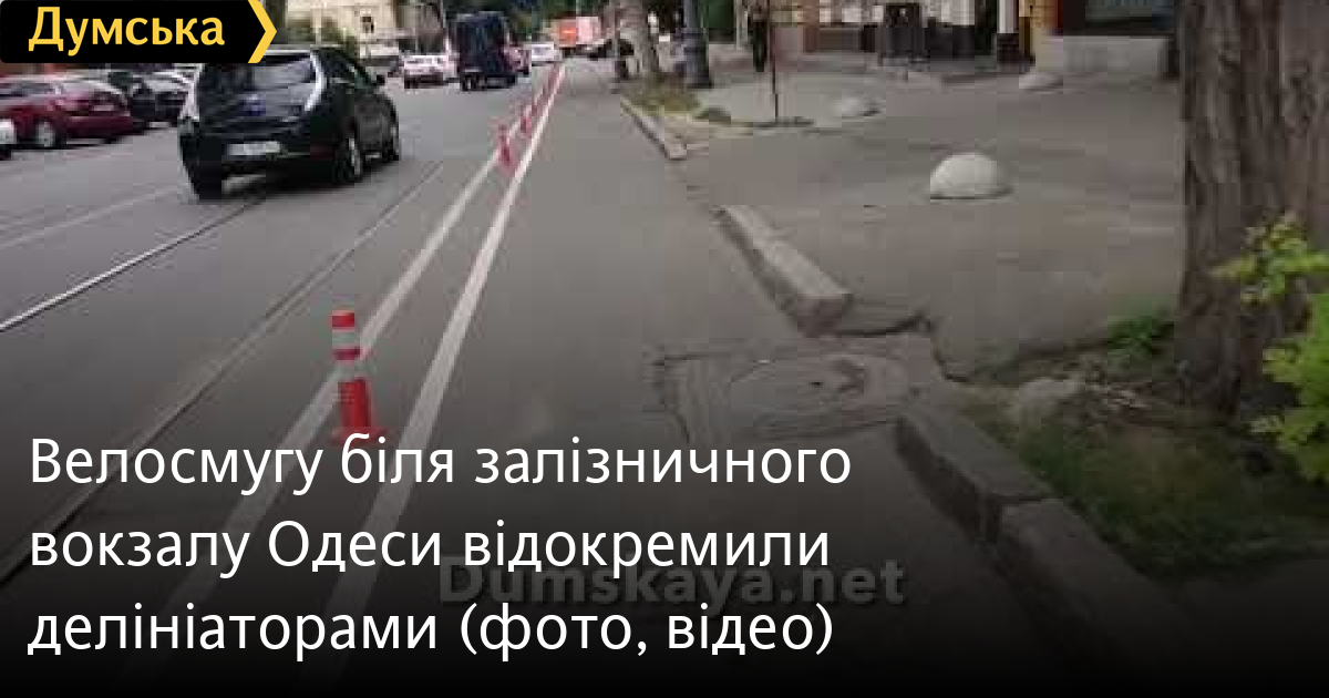 Велосмугу біля залізничного вокзалу Одеси відокремили делініаторами (фото, відео)Ділянку велосмуги на Середньофонтанській вулиці між Пироговською та Привокзальною площею відокремили від решти проїжджої частини спеціальними стовпчиками — делініаторами, повідомляє кореспондент «Думської». Нова ділянка закінчується пандусом, через який можна перетнути кут Куликова поля, щоб потім потрапити на Італійський бульвар на вулицю Лейтенанта Шмідта. За словами керівника транспортної комісії міської ради Петра Обухова, нововведення не дозволять паркуватися на велосмузі автохамам та убезпечать любителів двоколісного транспорту. «Я сам пробував проїхати цю ділянку, і перехрестя Пироговської та Середньофонтанської викликало відчуття небезпеки, — зазначив Обухов. — Тепер, коли там додали розмітку, зробили переїзд, велосипедистам та автомобілістам стане зрозуміліше, де саме їм рухатися». Помітили помилку? Виділяйте слова з помилкою та натискайте control-enter