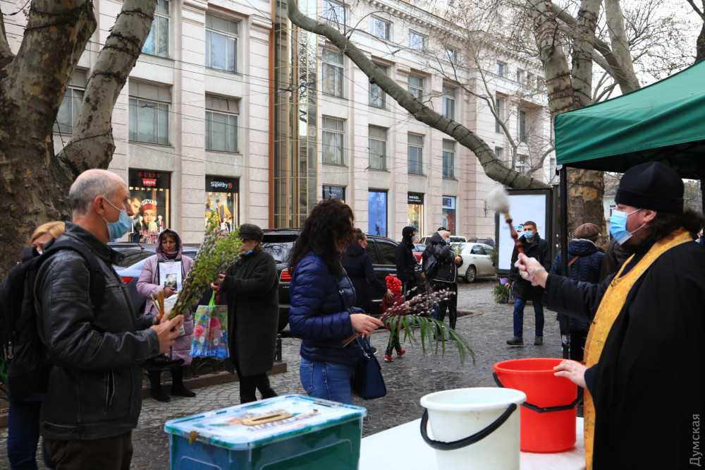 Сегодня все христиане празднуют один из главных праздников накануне Пасхи — Вербное Воскресенье. Хотя в Одессе с утра день выдался ненастным, возле храмов московского патриархата, как всегда, образовались рынки по продаже цветов.