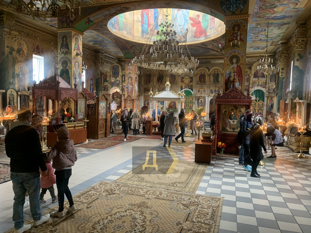 На Преображенской улице возле Успенского собора также возник стихийный рынок, все как всегда. Внутри соборов людей немного, прихожане ставят свечи и уходят праздновать домой.