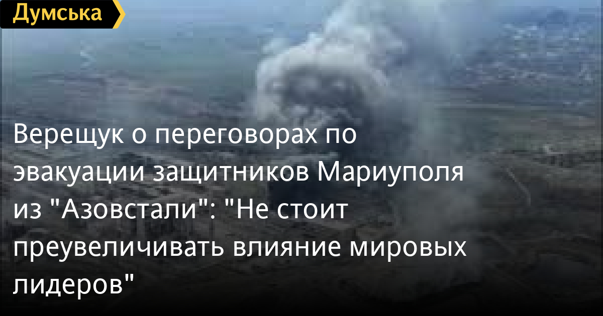Вице-премьер-министр Ирина Верещук призвала не преувеличивать влияние мировых лидеров на процесс переговоров об эвакуации защитников Мариуполя с территории завода «Азовсталь».